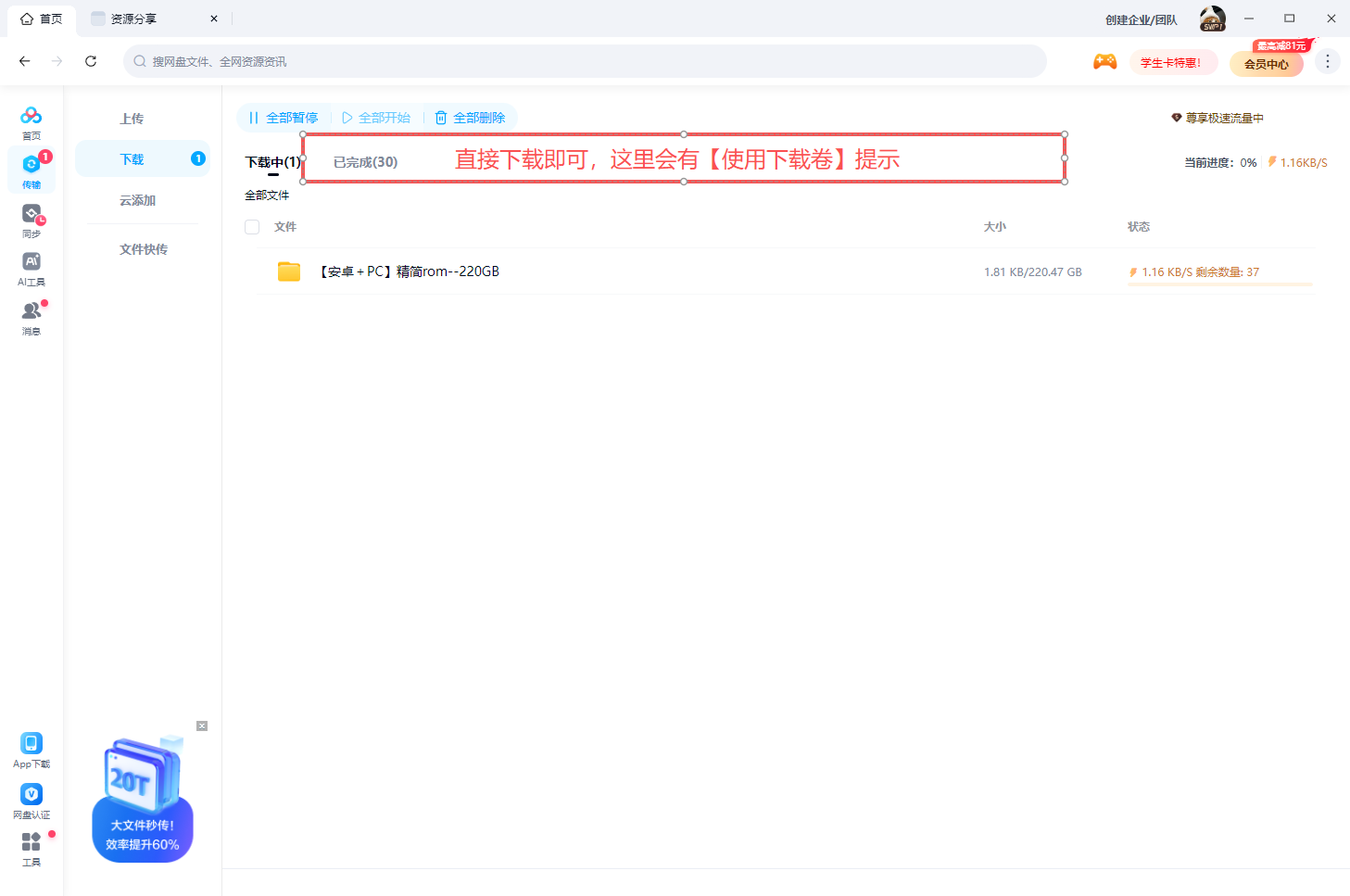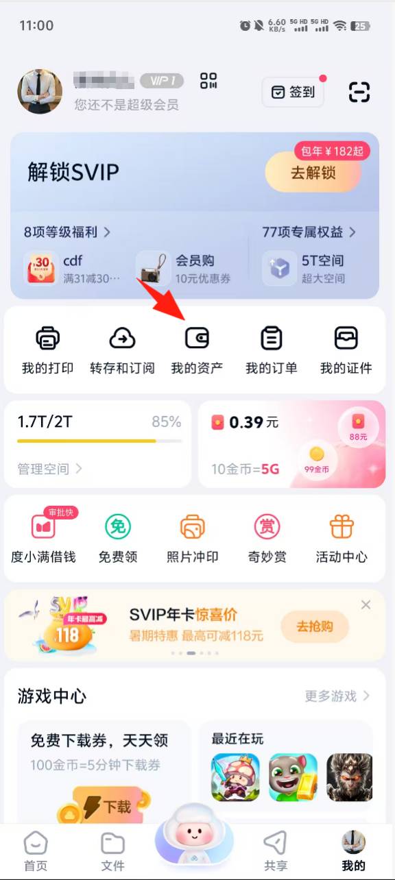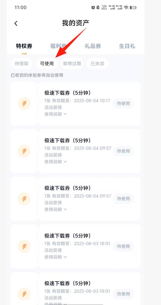 五、查看领取的下载卷,下载卷3天有效期,【我的资产】菜单默认隐藏,往左滑动可见