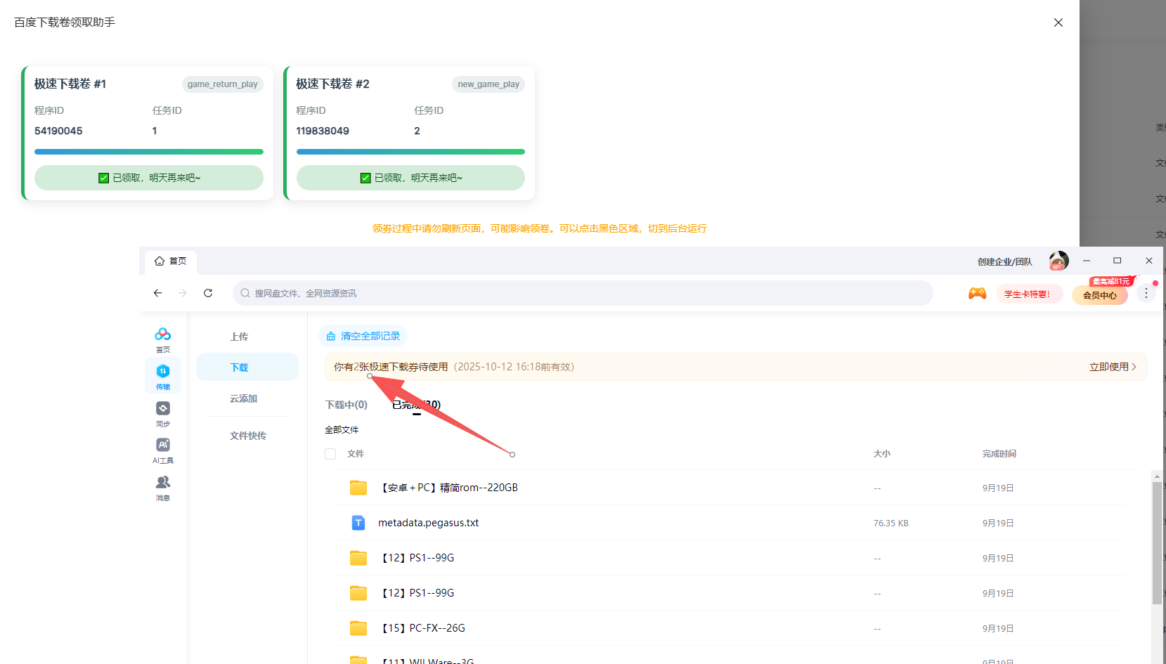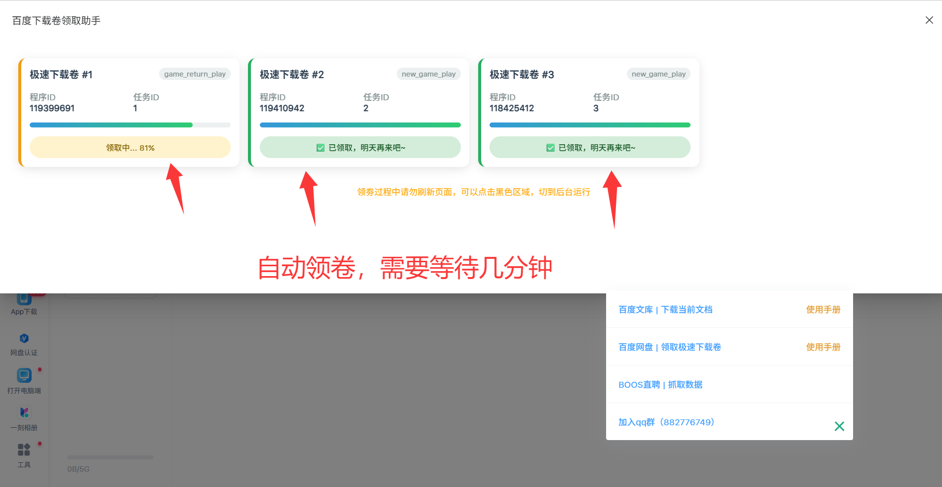 四、弹窗打开后会自动领卷,领卷需要10-30分钟,期间尽量不要刷新页面